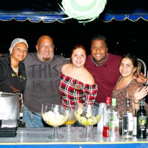 Das três quadras de peteca, uma delas foi reservada como pista para os dançarinos e duas estavam cobertas para proteger os convidados do vento. As mesas, no entanto, foram se espalhando para além dos espaços delimitados pela cobertura e a festa tornou-se um grande encontro de amigos/família.